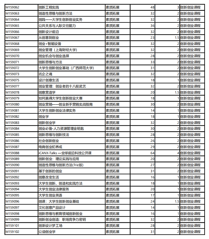 创新创业类在线公选课: