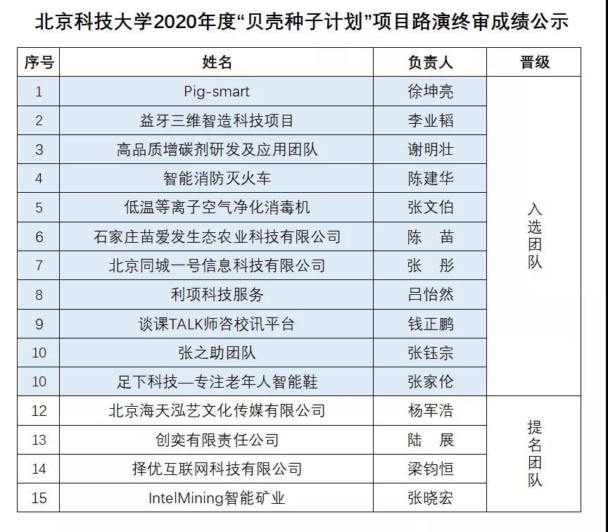 经过各项目团队的激烈角逐,通过评审嘉宾的打分和最终讨论,11支创业团队脱颖而出(2支团队并列第十名),入选2020年度“贝壳种子计划”,4支创业团队获得“贝壳种子计划”提名。