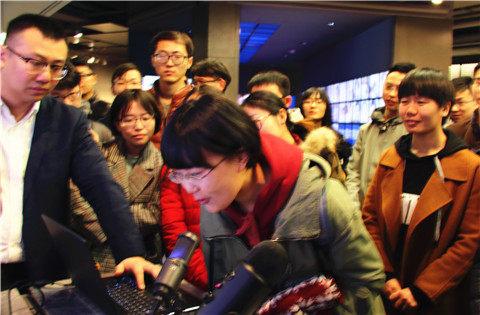 在Microsoft China Center,微软的项目经理薛宁首先向同学们展示了微软小冰的刷脸系统,同学们纷纷体验了一番。