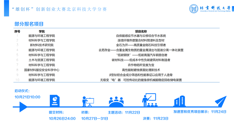 落实党中央、国务院鼓励支持“双创”决策部署,激发广大师生积极将所学知识转化到服务国家、社会的实践中,实现知识创造性转化。作为首批疏解至雄安新区的北京高校,我校将积极推动北科大科研成果与雄安新区高端高新产业发展有机结合。