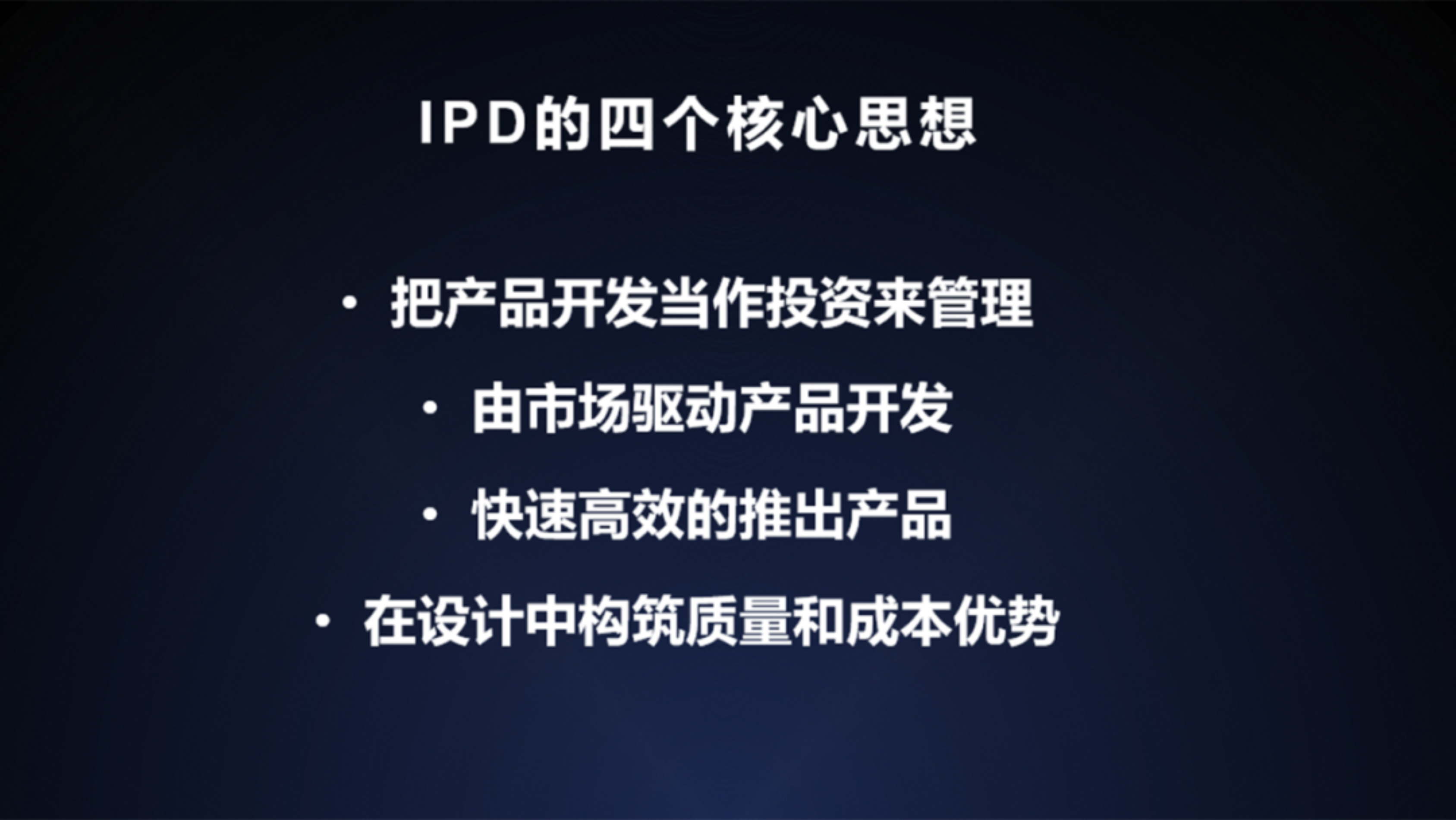 下午的课程由谷仓智能硬件孵化器总工程师刘静带来《谷仓智能硬件创新方法论》。课程伊始刘静老师介绍了集成产品开发(Integrated Product Development,简称IPD)赋能产品的核心思想。IPD是一套先进的、成熟的研发管理思想、模式和方法,它的核心思想是把产品开发当作投资来管理,由市场驱动产品开发,快速高效的推出产品,在设计中构筑质量和成本优势。