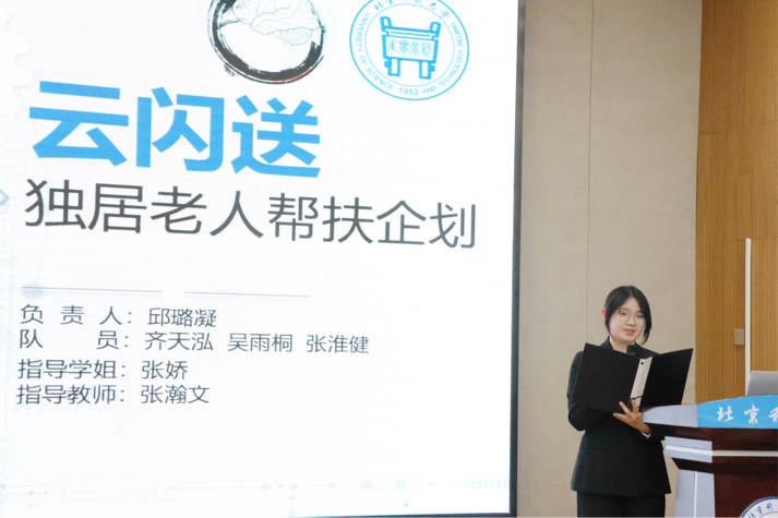 “身临其境”个人答辩人谢林利将问题与实践经历结合,学会将商科与科创结合,针对为什么要创业?为什么是科创?怎么做科创?三个问题做出了回答。
