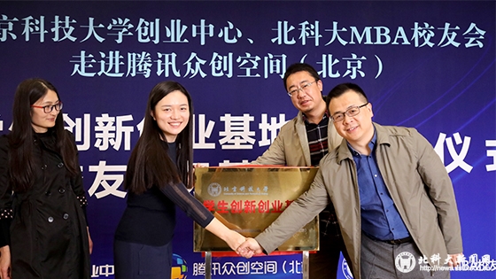 为进一步加强校企合作,整合相关资源,协同开展学生创新创业教育与创业项目扶持,我校与腾讯众创空间(北京)达成战略合作伙伴关系。4月8日上午,“91自拍 学生创新创业基地”揭牌仪式暨第三期“贝壳创业体验日”活动在腾讯众创空间(北京)举行。学校创业中心全体老师、腾讯众创空间代表、部分校友和在校生等50余人参与了活动。