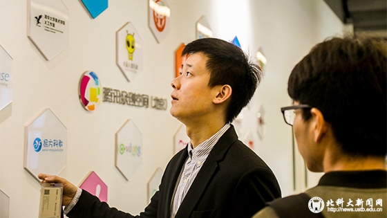 空间运营副总经理李长麟及相关工作人员带领校友和同学们参观了腾讯众创空间(北京)——目前国内最大的创业综合体。从设计理念、办公环境、入驻创业项目、综合服务等方面全方位、多角度的做了详细的介绍。