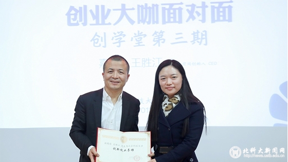 就同学们最关心的创业如何成功等问题,王胜江与学生们展开了深入的探讨。他谈到创新创业的三个思维转变,创业者应具备的素养气质,强调“创业者要有的匠人精神”。他指出,创新创业将是未来驱动国家经济发展的重要风口,所有的企业最后都需要通过产品或者服务进行变现,这才是创业企业的良性循环。结合共享单车、美图、滴滴等知名企业案例进行了创造价值的创业模式分析、创业公司品牌法则以及融资的黄金建议。为了更好的帮助我校学子创业项目落地,创业中心聘请王胜江担任学校“创新创业导师”。